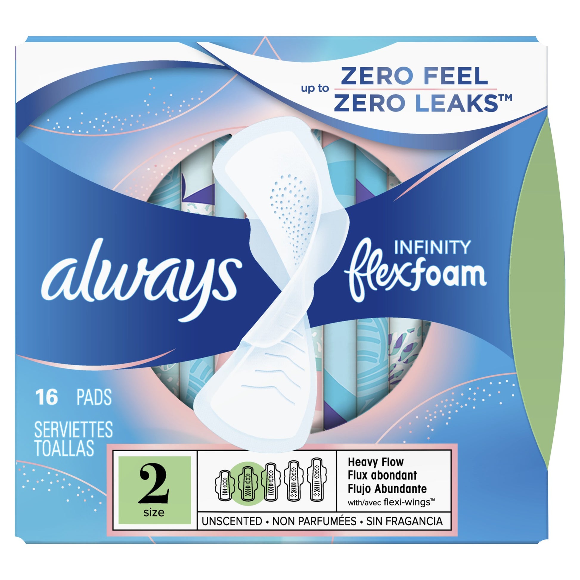 Description ProductDescription AlwaysInfinitySize2FemininePadswithWings,SuperAbsorbency,Unscented,16Count(PackagingMayVary) Ingredients NotAvailable.