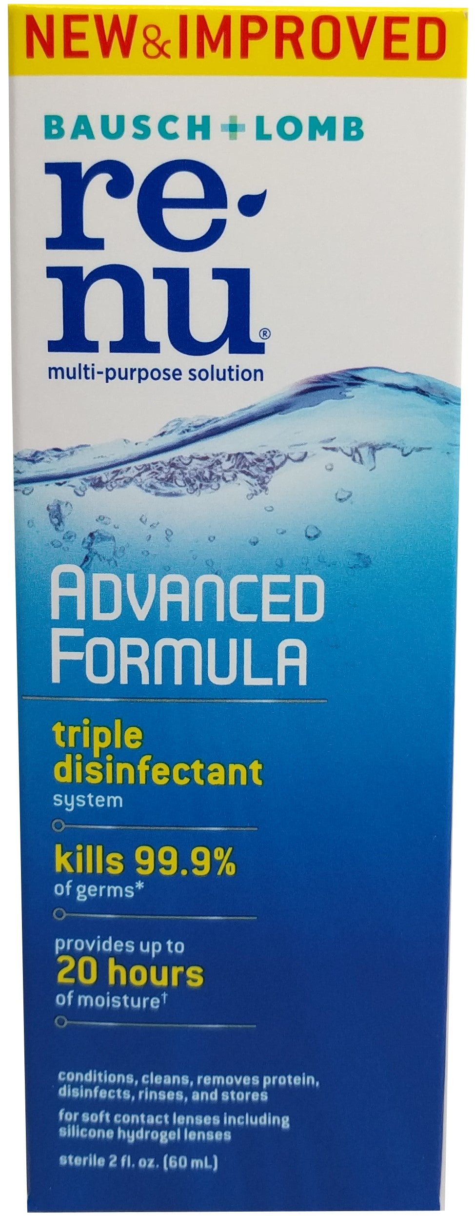 Look forward to exceptional cleaning, disinfection, conditioning, and care for your contact lenses with Renu multi-purpose contact lens solution. From the Eye Care Experts at Bausch + Lomb, Renu contact lens solution offers everyday value and is designed to be gentle on the eyes. It conditions and hydrates lenses for all day comfort, allowing your lenses to feel fresh at the end of the day. Renu Advanced Formula contact lens solution provides up to 20 hours of moisture (based on a laboratory study), helping to prevent lens dryness. Renu lens solution provides excellent cleaning, helping prevent deposits for clean, clear lenses when used daily. The multi-purpose contact solution leverages 3 disinfectants for outstanding disinfection. In fact, nothing disinfects better [vs. multi-purpose solutions based on standardized testing (ISO 14729) against five common organisms]. Renu solution makes contact lens care easy - simply rub and rinse your contact lenses and store them in the case for at least 4 hours until you are ready to wear them again.