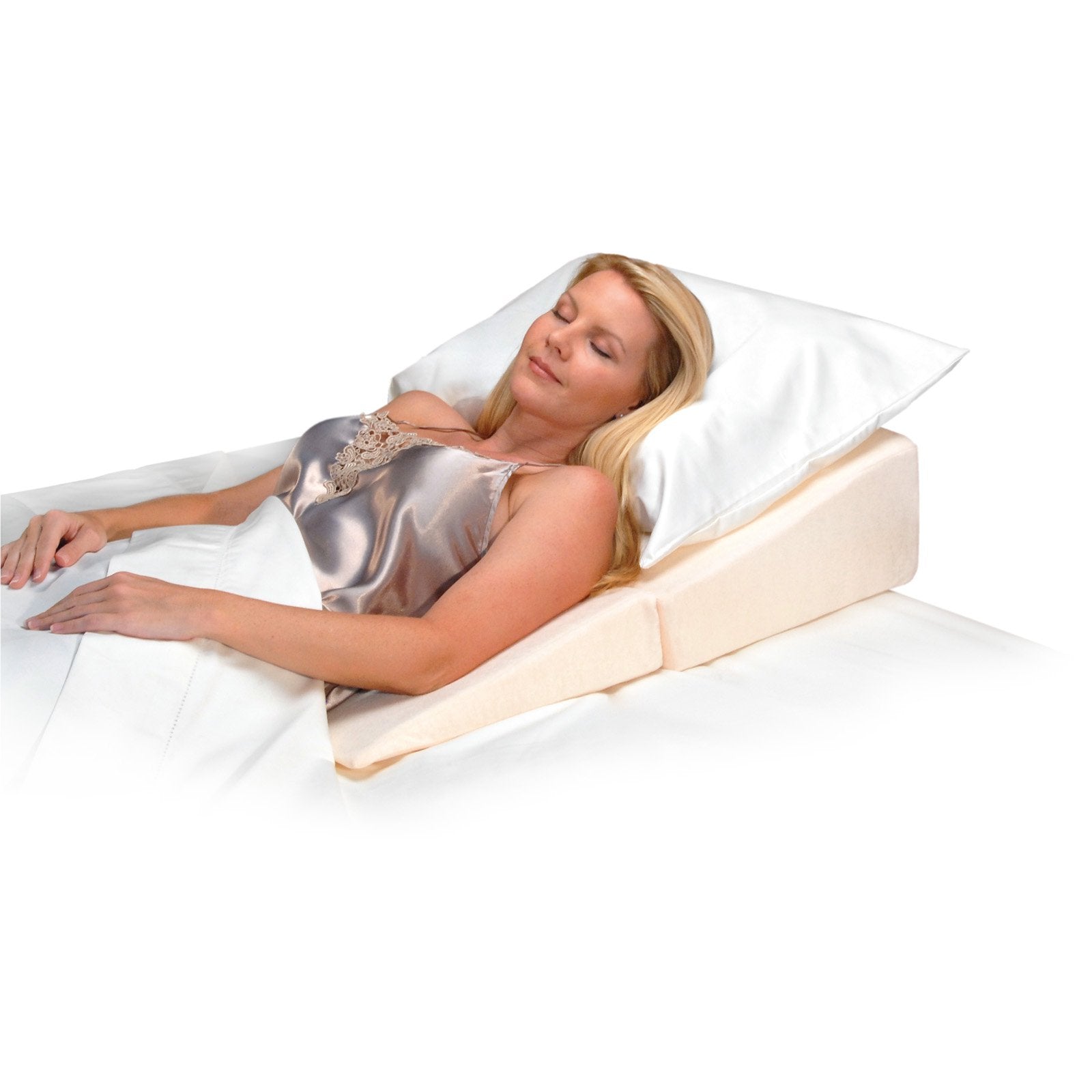 Sleep elevated and more comfortably all night long with this contour folding wedge that folds in half for compact storage. A firm, comfortable design supports your upper body in an upright, angled position. Simply fold and store when not in use.