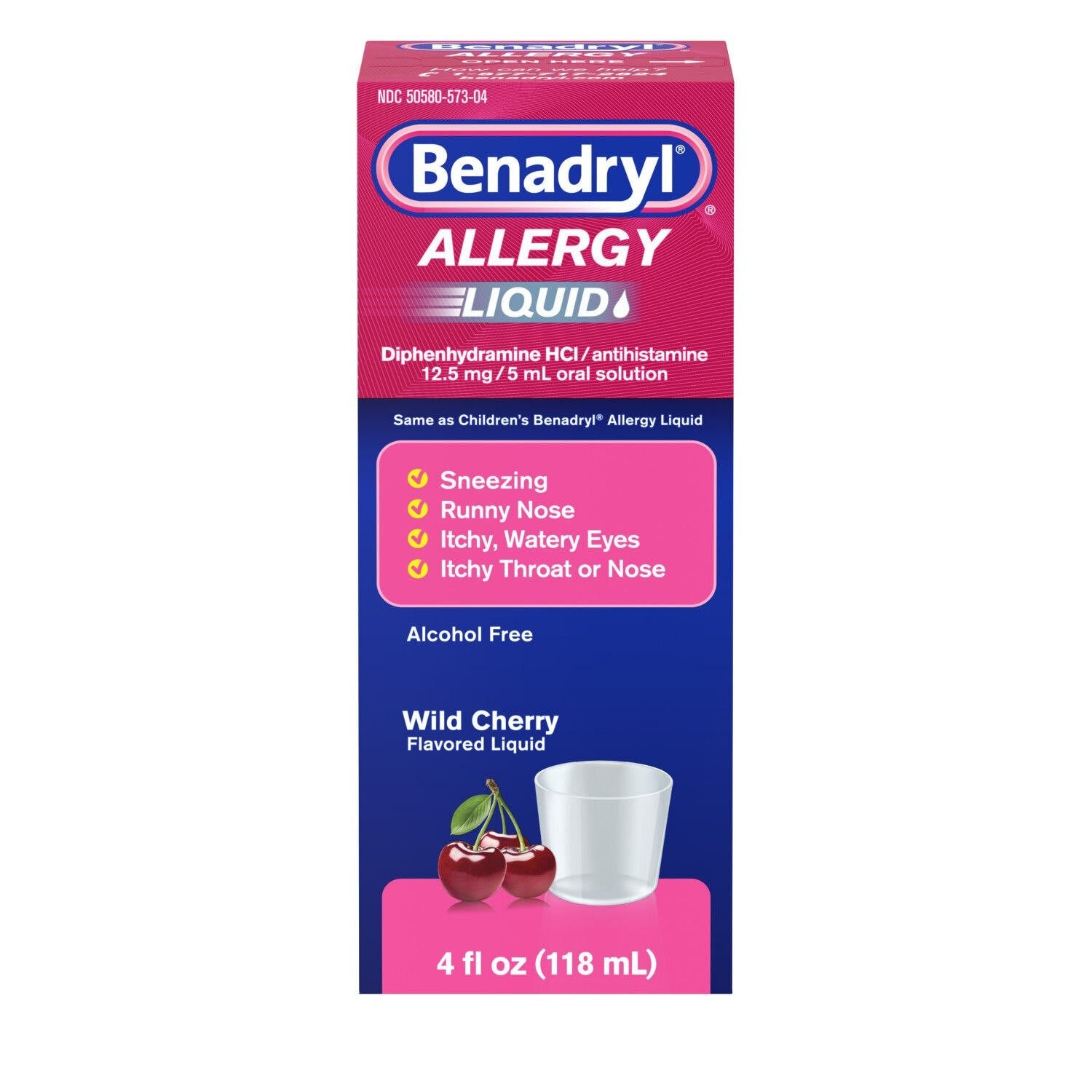 Benadryl Liquid Allergy Relief, Wild Cherry, 4 FL OZ.