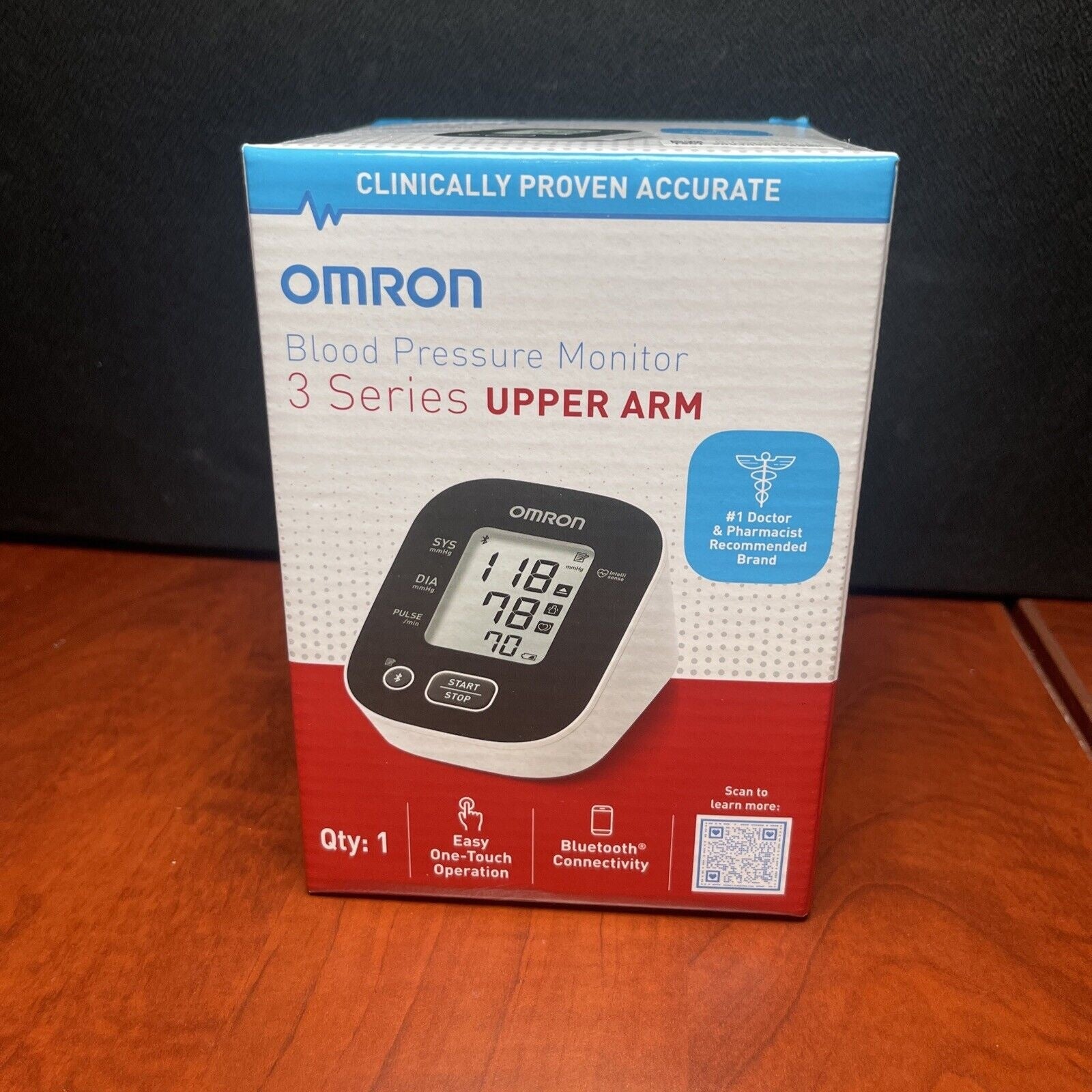 Monitor your blood pressure from the comfort of home with the OMRON 3 Series upper arm blood pressure monitor featuring Bluetooth wireless technology (BP7150). Easy to use and clinically validated for accuracy, this monitor is powered by OMRON Advanced Accuracy technology, which measures five times more data points than previous OMRON models for more consistent and precise readings. This OMRON-exclusive feature minimizes the impact of your breathing and movement on your blood pressure measurement to help reduce inconsistencies and errors.The OMRON 3 Series upper arm monitor not only measures blood pressure, but also detects pulse rate, irregular heartbeats, and body movements during measurements. Store up to 14 readings in the monitor while enjoying unlimited storage in the free OMRON connect app for easy tracking and sharing.When you sync your monitor to the OMRON connect app, you can conveniently view trends of your readings on customizable graphs, receive valuable insights based on your health data, and share your results with family, caregivers, and doctors. The OMRON connect app is compatible with select iOS and Android.For a softer, more comfortable cuff fit, this monitor includes the contoured OMRON wide-range D-ring cuff, which fits standard and large-sized adult upper arms ranging from 9" to 17" in circumference. Simplified Operation - An easy-to-read display and one-touch operation makes home monitoring convenient and intuitive Advanced Accuracy Technology - This OMRON-exclusive technology measures five times more data points than previous OMRON models, minimizing the impact of body movements during measurements for more consistent and precise blood pressure readings. Hypertension Indicator - Receive an alert if your systolic (upper) measurement reaches 130 mmHg or above, and/or if your diastolic (lower) measurement reaches 80 mmHg or above. Irregular Heartbeat Detection - Receive an alert when your heart beats irregularly, which is vital information to track and share with your doctor. Wireless Bluetooth Convenience - Sync to the free OMRON connect app to store unlimited readings, track trends, and share your health data with your doctor - available on the App Store and Google Play Store. Comfortable Cuff - The wide-range, D-ring cuff is designed with a soft, contoured shape for a more comfortable measurement. Fits adult upper arms 9" to 17" in circumference. A Global Leader You Can Trust - As the #1 doctor and pharmacist-recommended brand of blood pressure monitors with a 50-year history of award-winning innovations, OMRON is dedicated to providing reliable, easy-to-use products that meet the highest clinical standards of accuracy. This product is registered with the FDA as a medical device, backed with a two-year warranty, and is FSA/HSA-eligible. Simplified Operation - An easy-to-read display and one-touch operation makes home monitoring convenient and intuitive.
