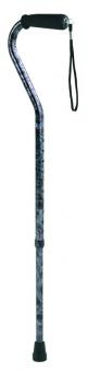 The Carex Offset Designer Cane (Gray), #A51800, features a soft cushioned handle with a convenient wrist strap to provide better comfort and grip. The height is easily adjusted with the push of a button.