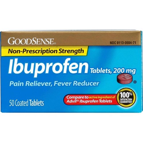 Sold in lots of 24 @ $2.85 each. GoodSense(R) Ibuprofen Tablets 200 Mg 50's. Compare to Advil Ibuprofen Tablets. Proudly made in the USA. Minimum of 12 months shelf life from date of purchase.
