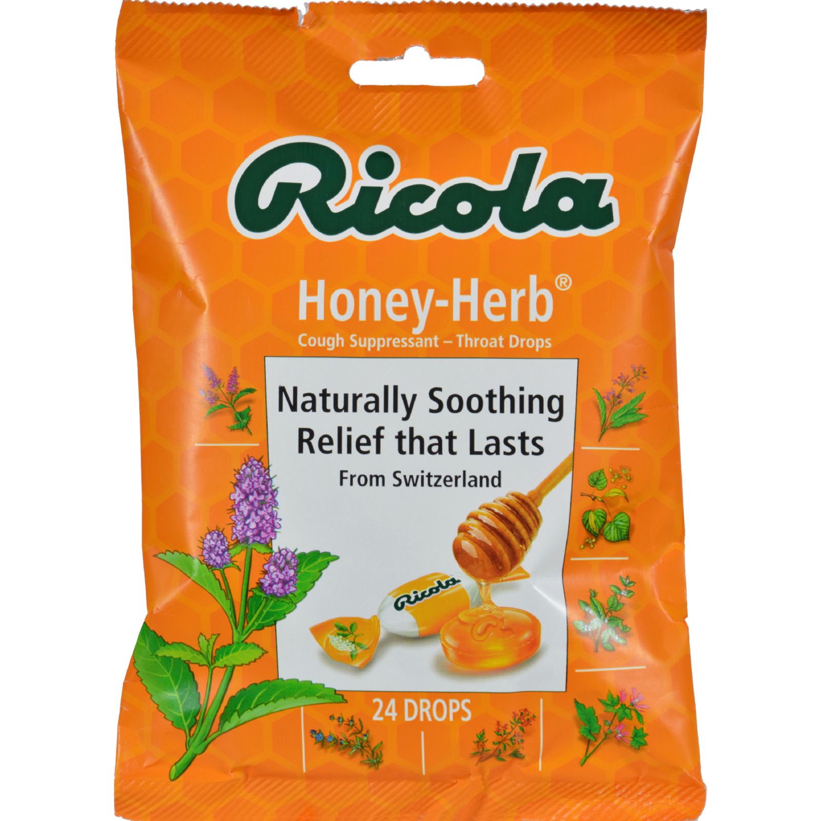 Cough suppressant drops o Soothes sore throats o With natural honey o o Ricola Cough Suppressant Throat Drops - Honey Herb | 24 ct o Sold by Swanson Vitamins.