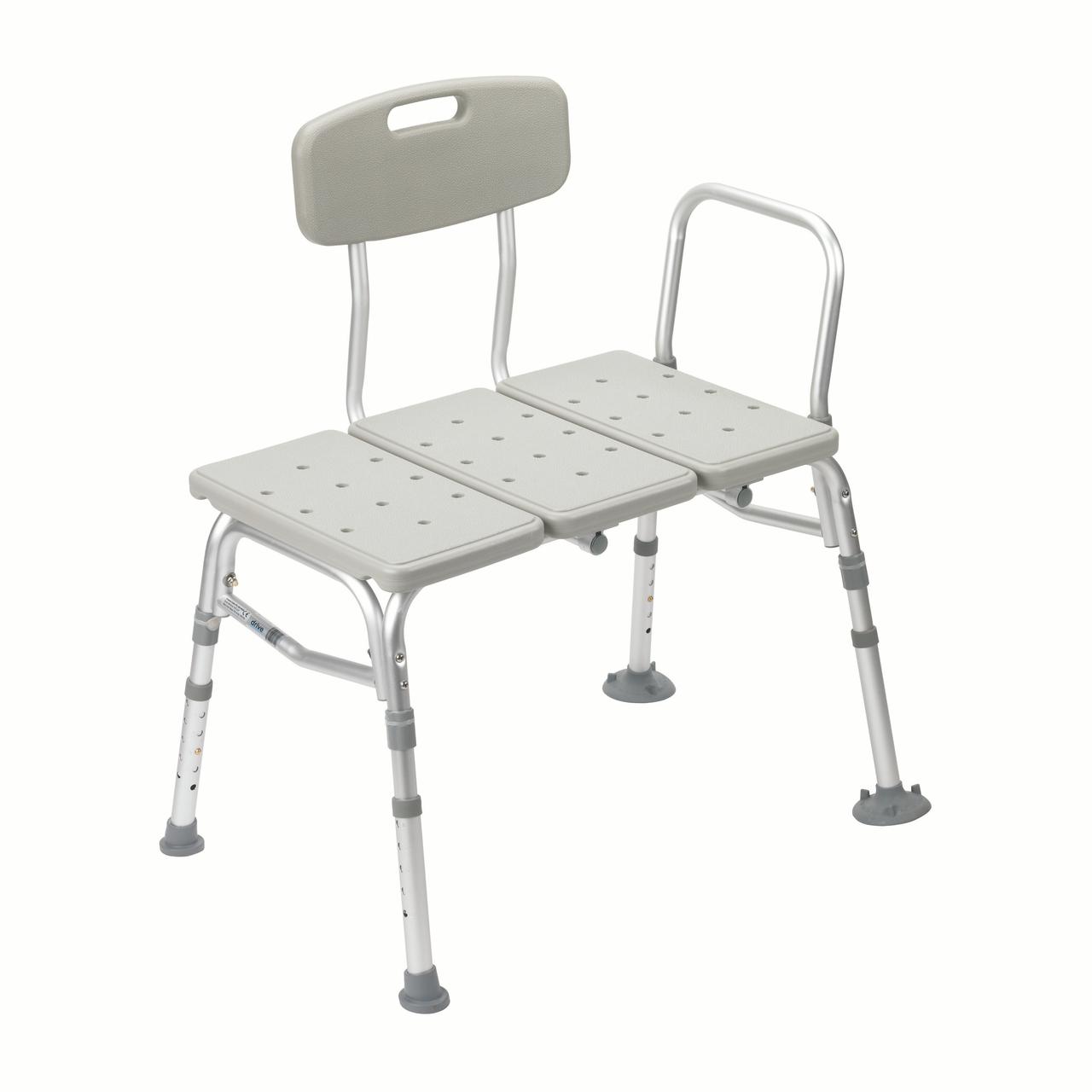 Getting into and out of the tub can be quite a challenge if you suffer from poor balance arthritis limited mobility or injury issues. If you're finding that simply taking a shower has become a concern you might find that a transfer bench from Drive Medical is the solution you've been looking for. The transfer bench allows you to sit down outside of the tub and then maneuver yourself into the tub where you can remain seated throughout the shower. You'll find the experience more comfortable and safer than before with a stable plcae to sit in the tub. Plus you'll eliminate the need for assistance increasing your independence. The Three Piece Transfer Bench is lightweight assembled without tools and has height adjustable legs with non-slip feet making it a simple easily portable and safe bathing solution. It also includes a removeable backrest and armrests to make the experience of sitting in the shower even more pleasant.
