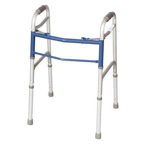 Easy to fold and unfold, yet sturdy for confident use. Simply push down on its dual side buttons to fold this walker between uses. Fixed 5" wheels and glide caps provide smooth, fluid movement. From Carex.